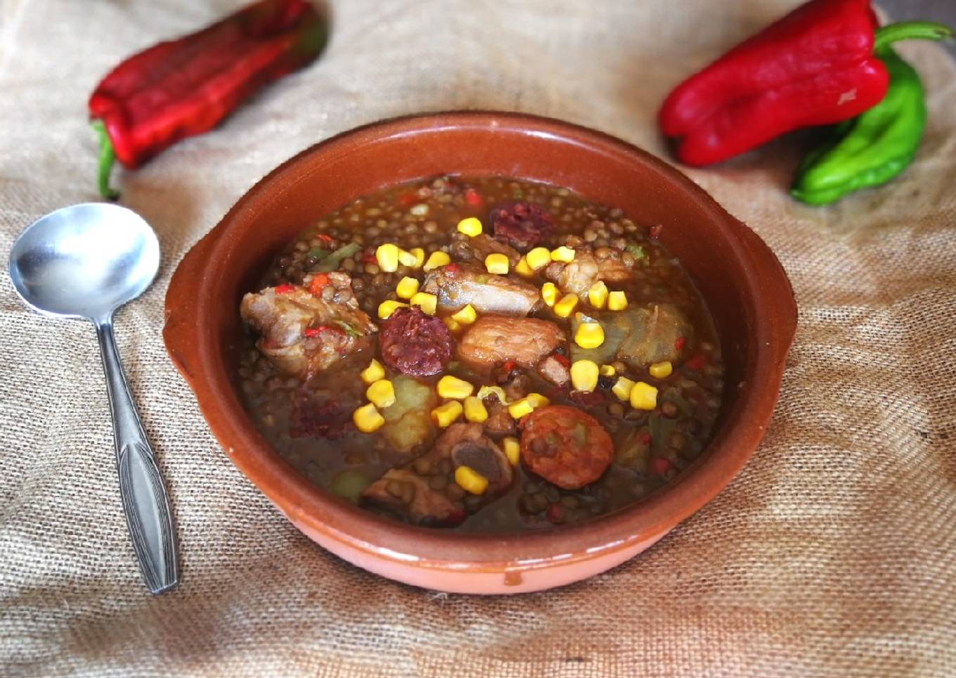 - 4-5 puñados abiertos lentejas Pardina