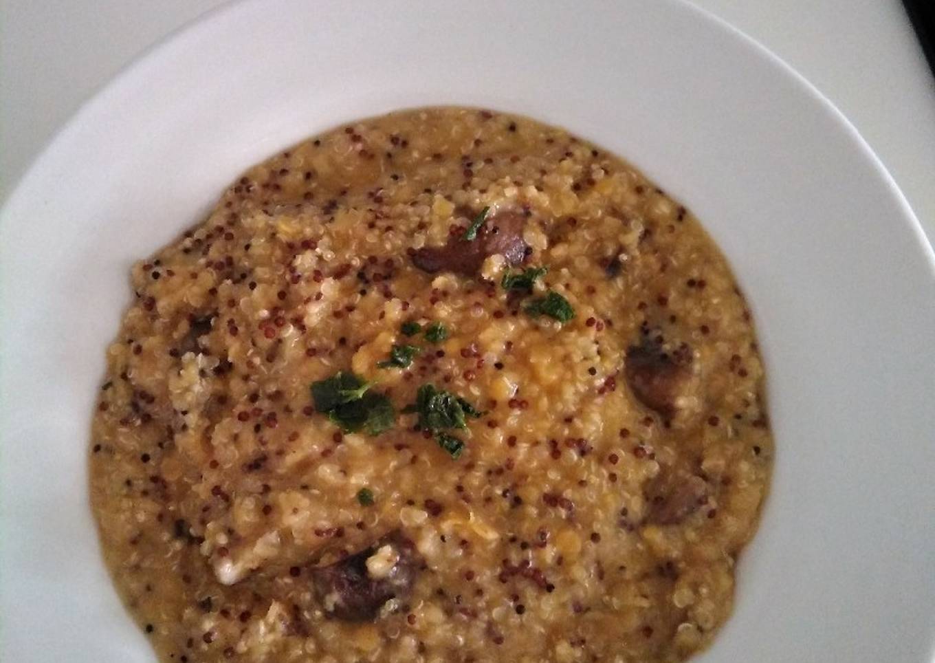 Guiso de lentejas rojas con hongos y quinoa