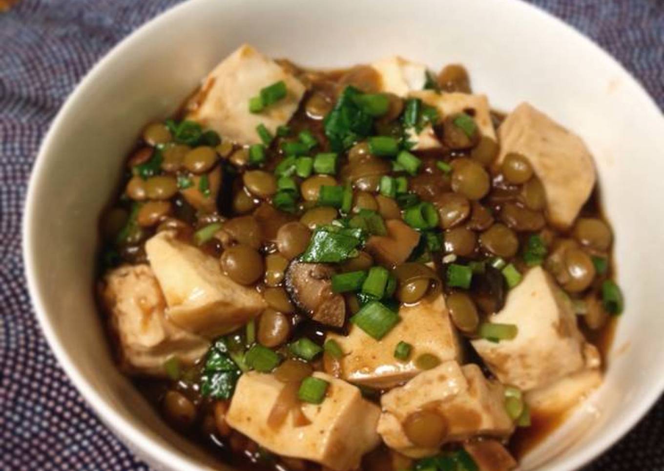 - Remueve la mezcla que reservamos en el punto 5 y añádelo a las lentejas y tofu. Llévalo a ebullición y hierve a fuego lento durante unos minutos hasta que la salsa se haya espesado un poco. Acompáñalo con la cebolleta picada y sirve.