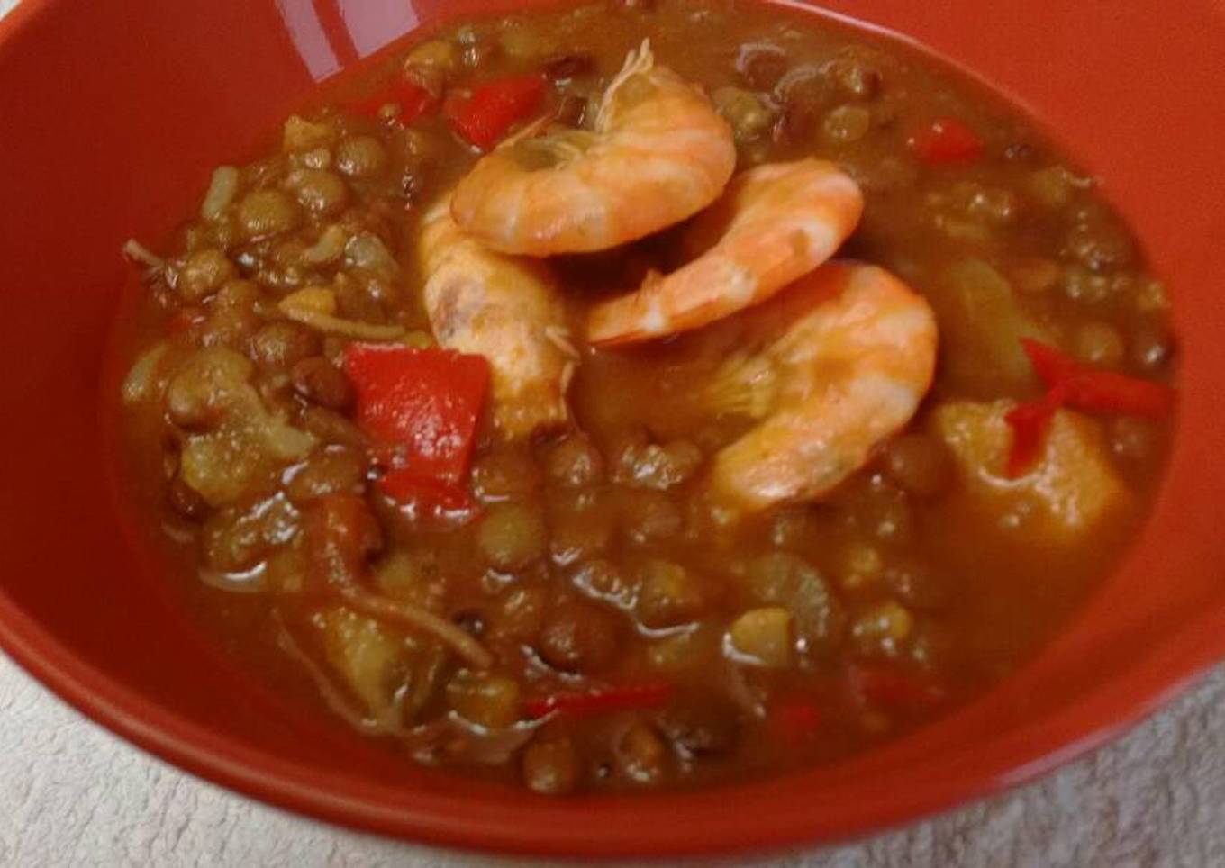 Lentejas con langostinos