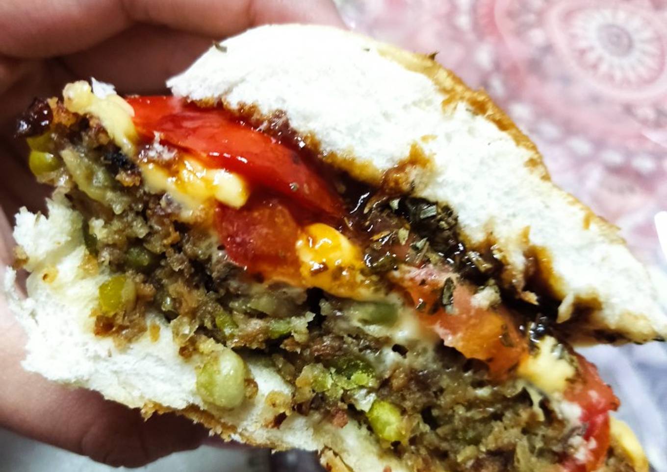 Hamburguesa de soja texturizada, lentejas y arvejas. Sabor carne