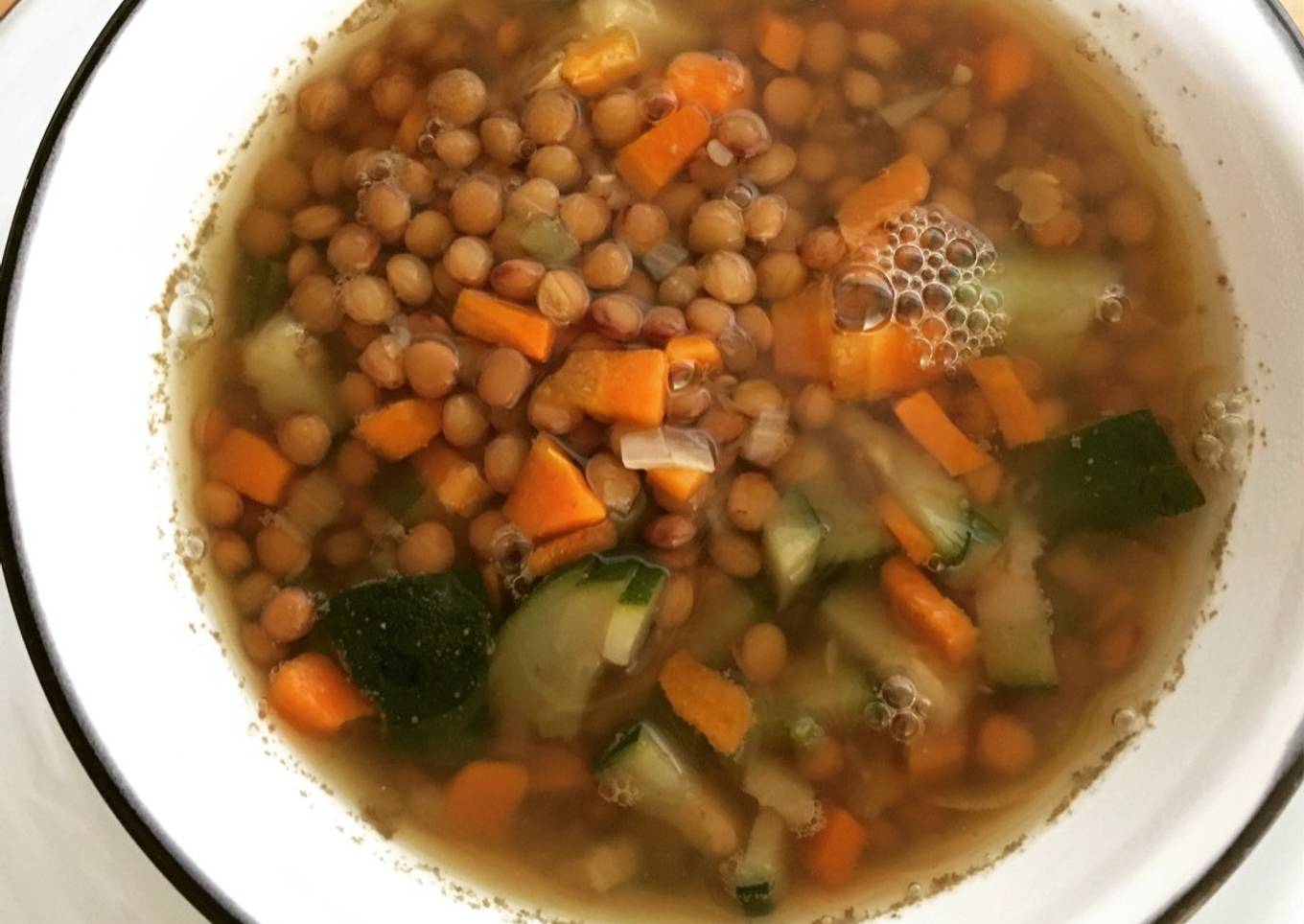 - Pasado unos 30-35 minutos de'hervor, mirar si las verduras y lentejas están cocidas.