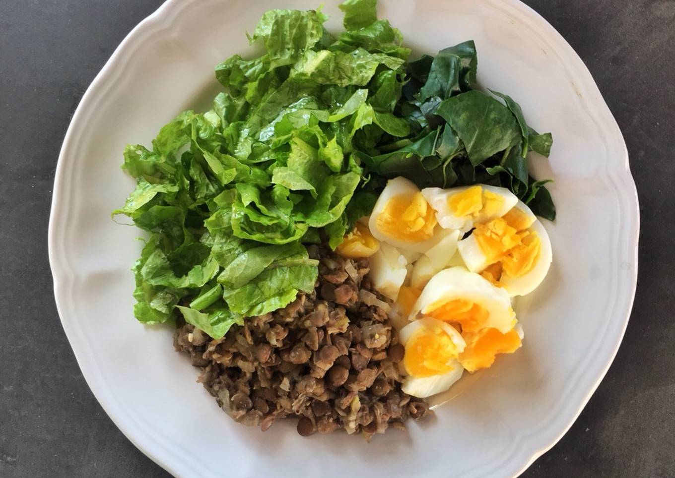 - Sazonar la lechuga con aceite de oliva y jugo de limón y los huevos con sal.