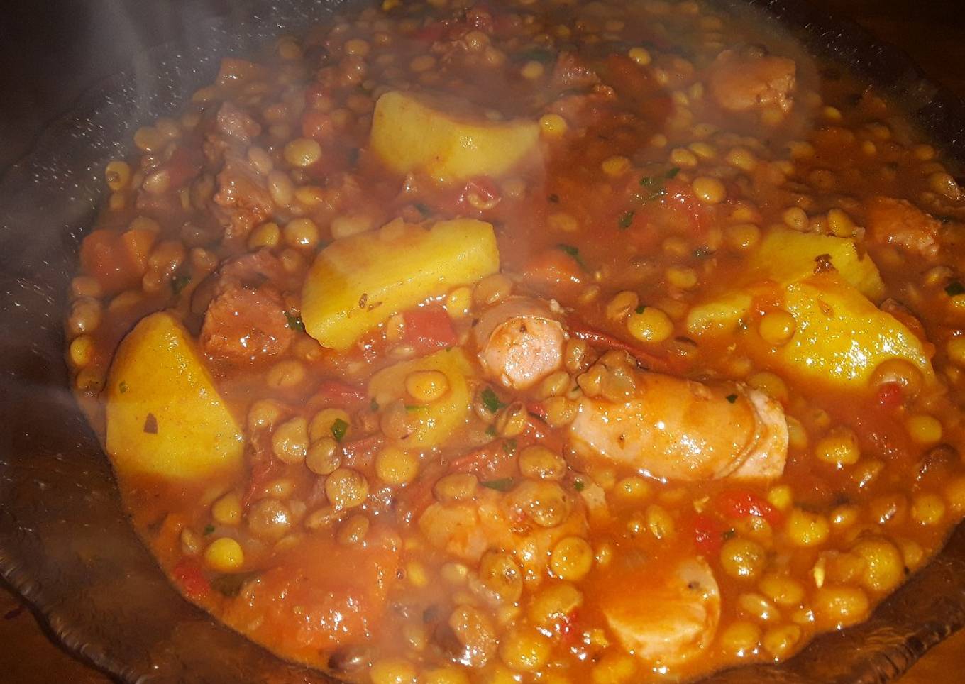 Guiso de Lentejas con Carne y Salchicha Parrillera