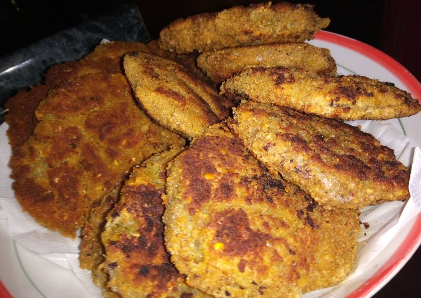 - Luego iremos haciendo la forma con las manos, aplastando las bolas suavemente, sin deshacerlas e intentando que queden con buena forma. Pasar por los huevos batidos, y después por el pan rallado.(así quedan como apanadas)