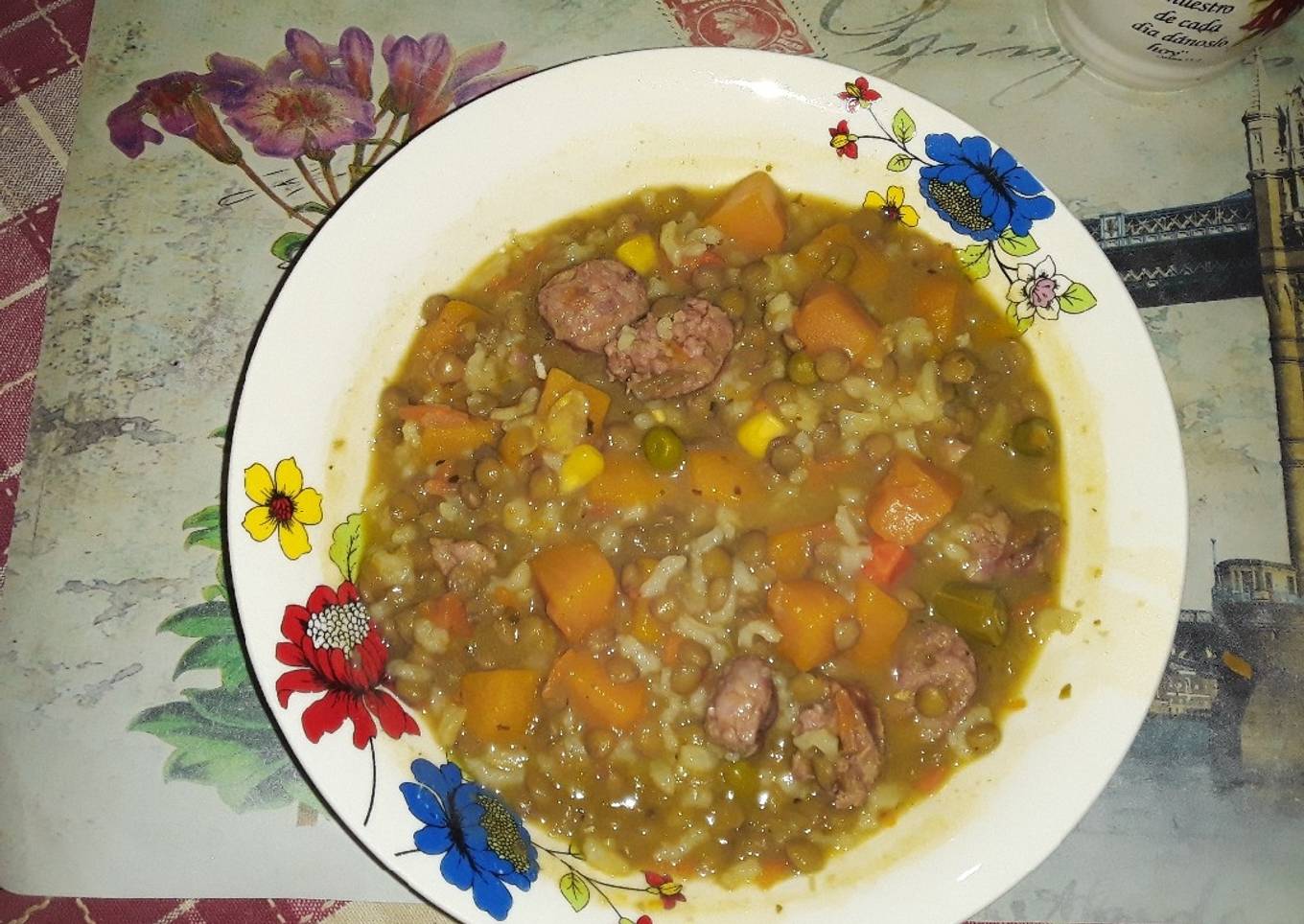 Lentejas con longaniza y verduras