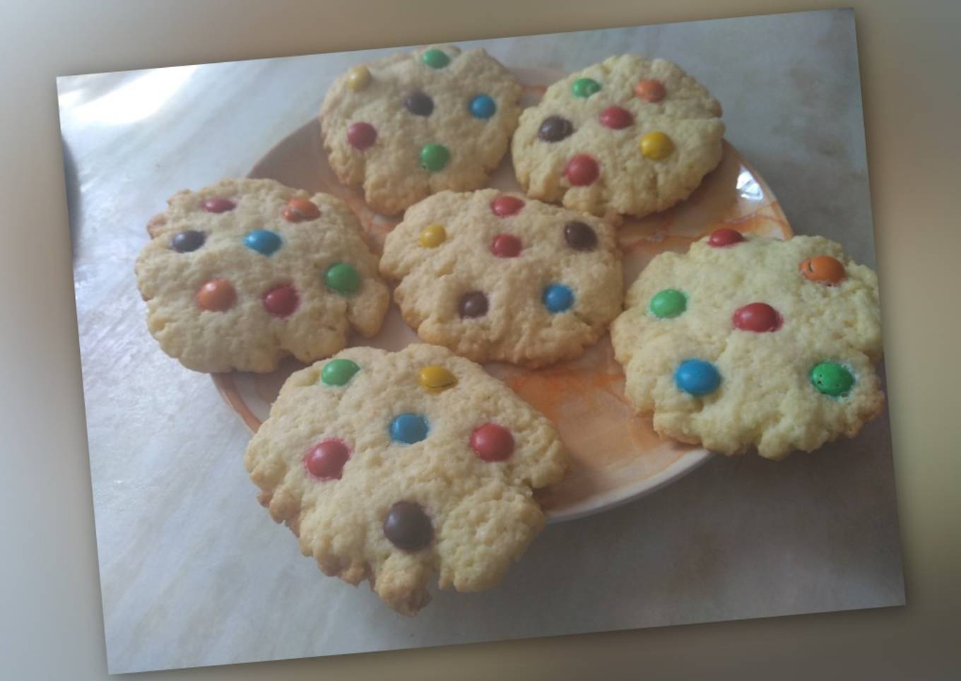 - Pasada la media hora sacar de la heladera y tomar pequeñas porciones (a su gusto) y hacer bolitas con las manos y la colocamos en una placa enmantecada y la aplastamos con los dedos para formar la galletita y por encima le agregamos las lentejas de chocolate.