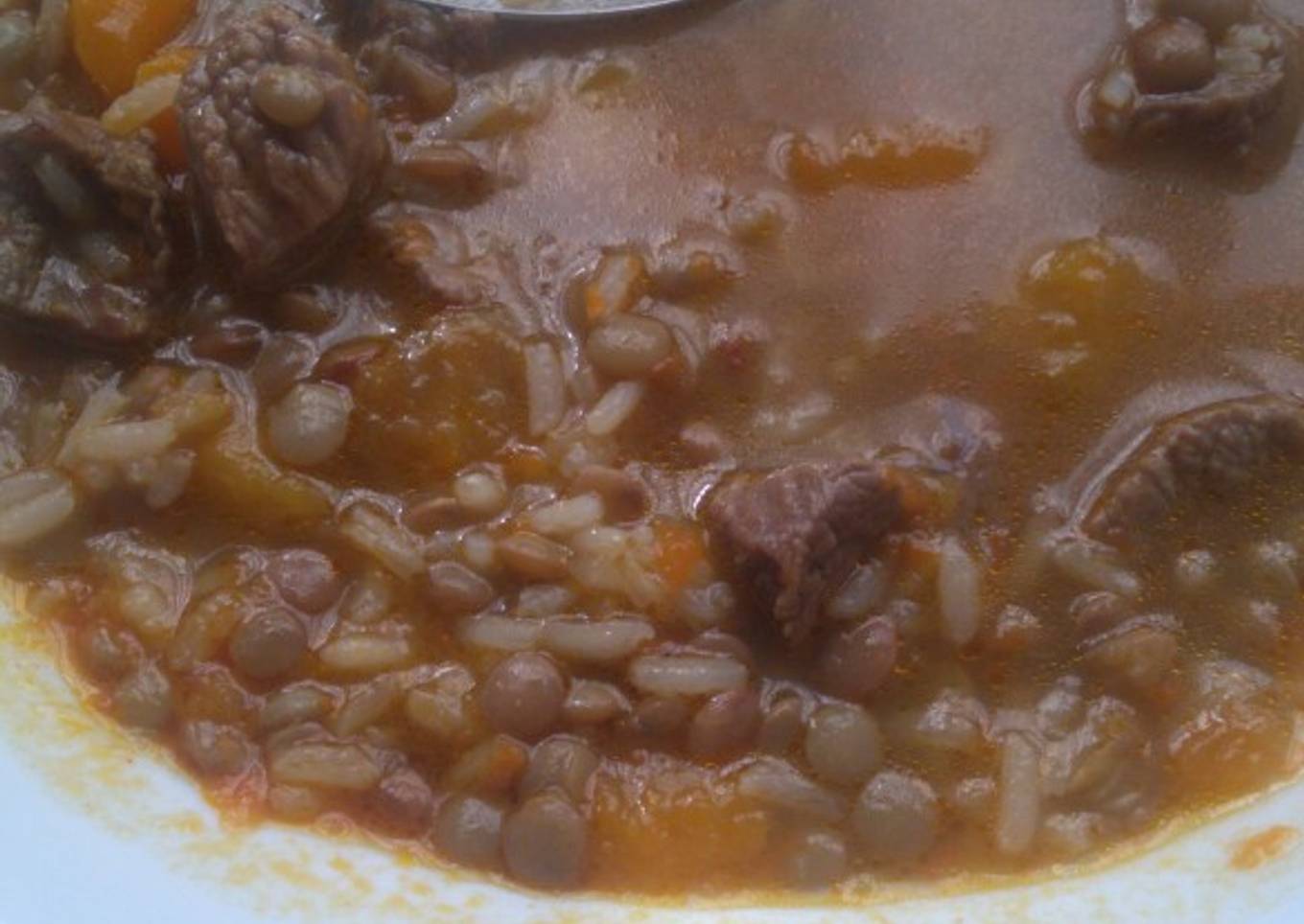 - Luego añadimos el arroz y esperamos un poco y le agregamos las lentejas (si hace falta añadir más agua, pero que no quede muy aguado)