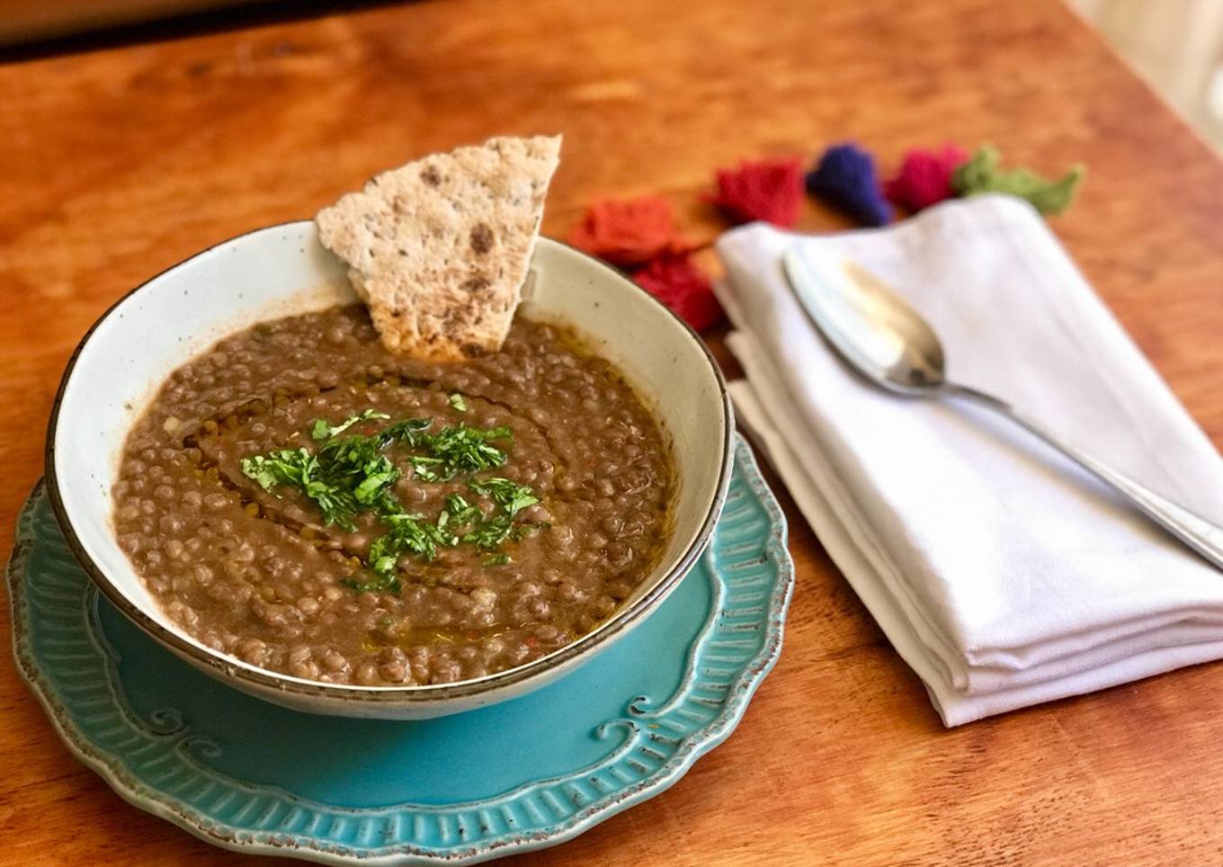 - Quedará como una crema espesa, agregar esta mezcla a la olla de las lentejas, integrar todo, agregar aceite de oliva, sal a gusto y poner al fuego hasta que suelte hervor y apagar, si necesita más agua puede agregar lo reservado de la cocción de las lentejas o simplemente agua purificada y LISTOOOOOOO