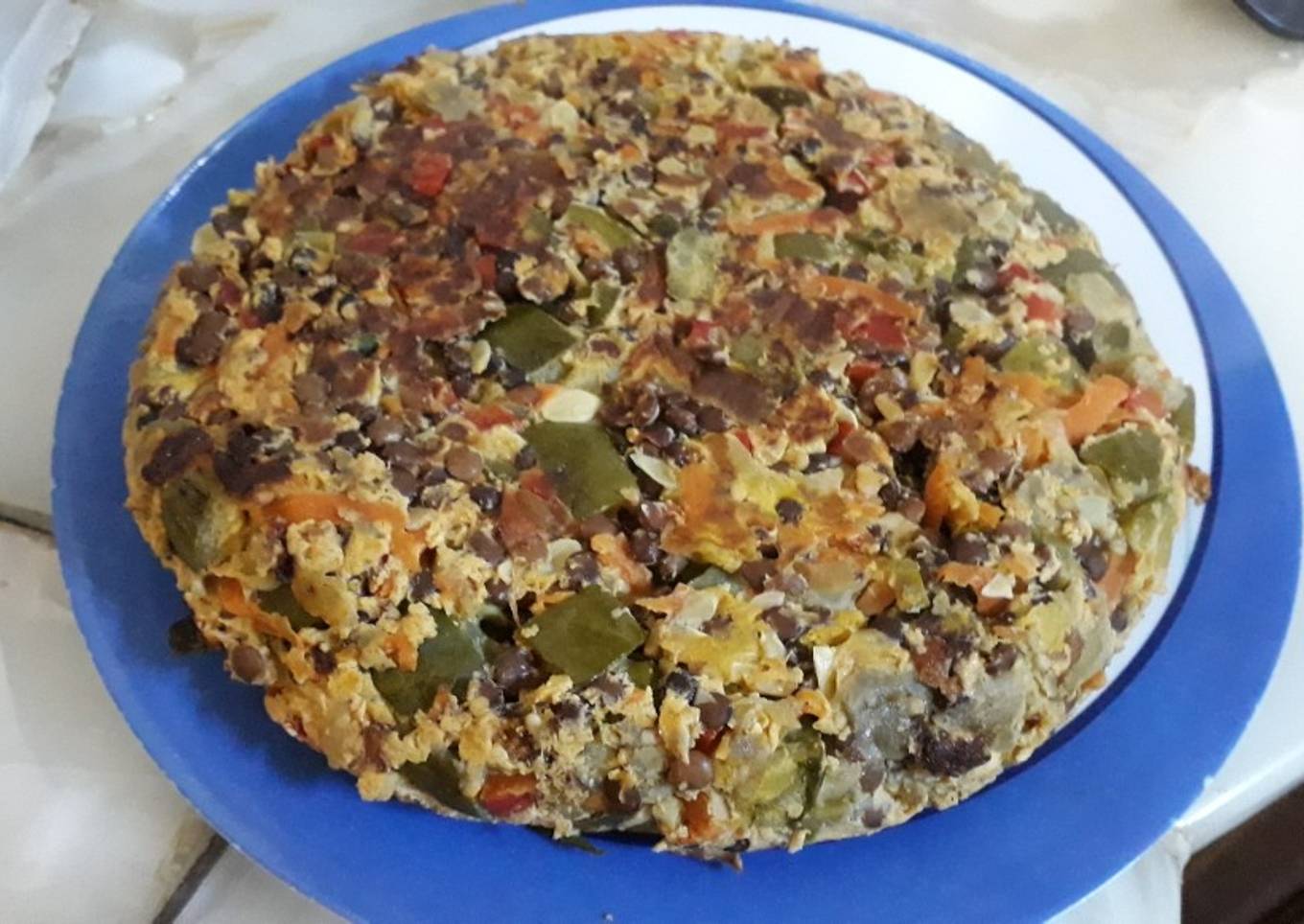 Tortilla de lentejas, zapallitos y berenjenas
